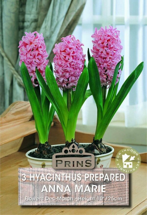 Prepared hyacinths are specifically suited to be grown in pots. They can also be grown just ‘on water’ using special ‘hyacinth glasses’.