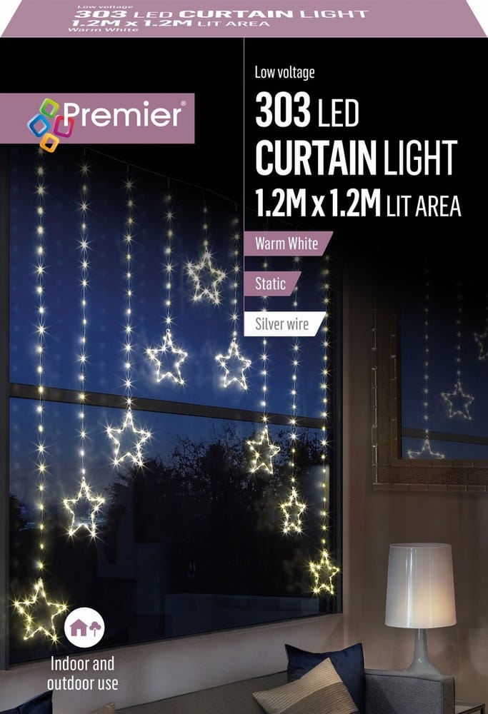 Home » Christmas » Christmas Lights » Curtain Lights & Garlands » 303 Warm White LED Pin Wire Star Curtain Light